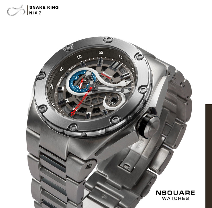 NSQUARE SnakeKing Automatic Watch - 46mm N10.7 Cool Grey/SS Bracelet|蛇皇系列 自動錶 - 46毫米 N10.7 冷灰/不銹鋼錶鏈帶 - Watches.com -