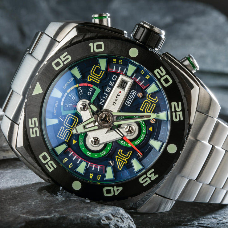 A retrograde functioning split time functional chronograph counts out to an incredible 1/10th of a second. Bold, commanding and yet comfortable. The Ingenuity takes its name from the small robotic helicopter operating on Mars as part of NASA's Mars 2020 mission. The helicopter marked the first time any aircraft had performed a powered, controlled flight on another planet, in a breakthrough of discoveries beyond our planet.