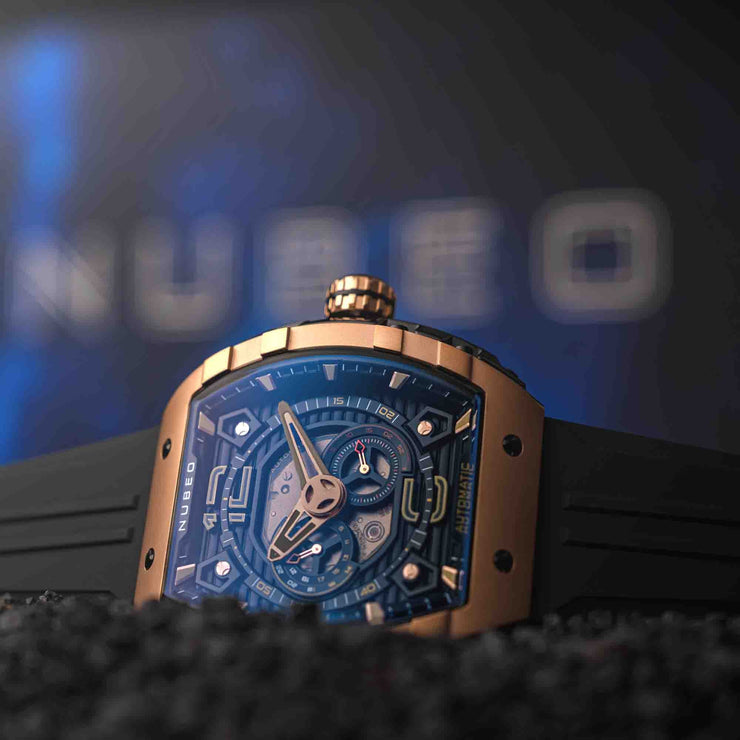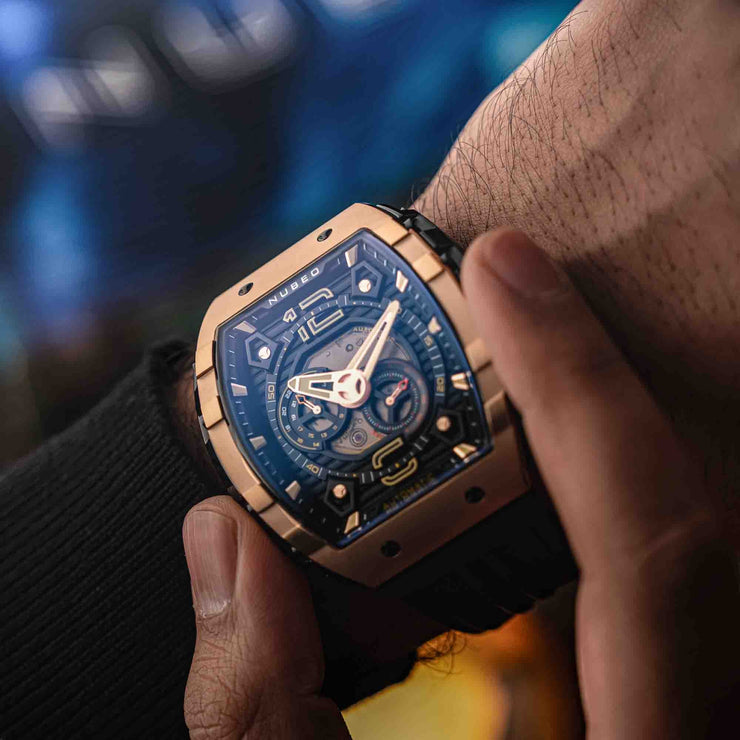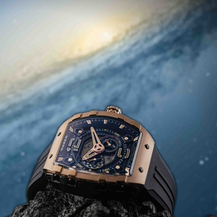 A new addition to Nubeo's beloved collection, Magellan 24 Hour Automatic features a signature tonneau-shaped case with interconnected parts, and a Japanese automatic movement with a 24-hour feature. This timepiece boasts both style and functionality. Available in bold and vibrant colors, it's a stunning and captivating addition to your watch collection.