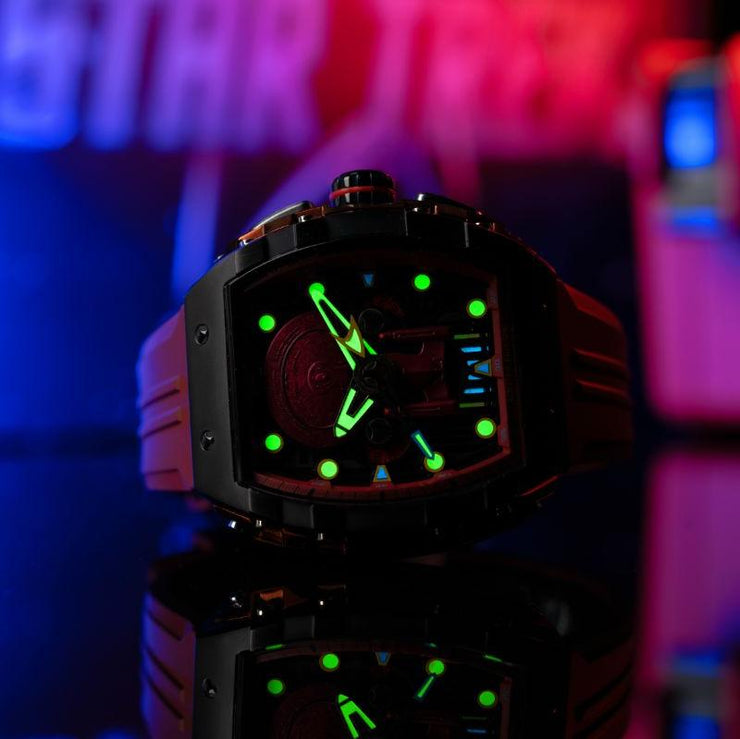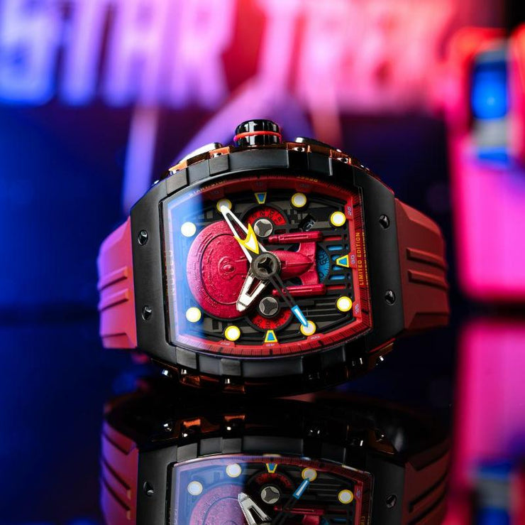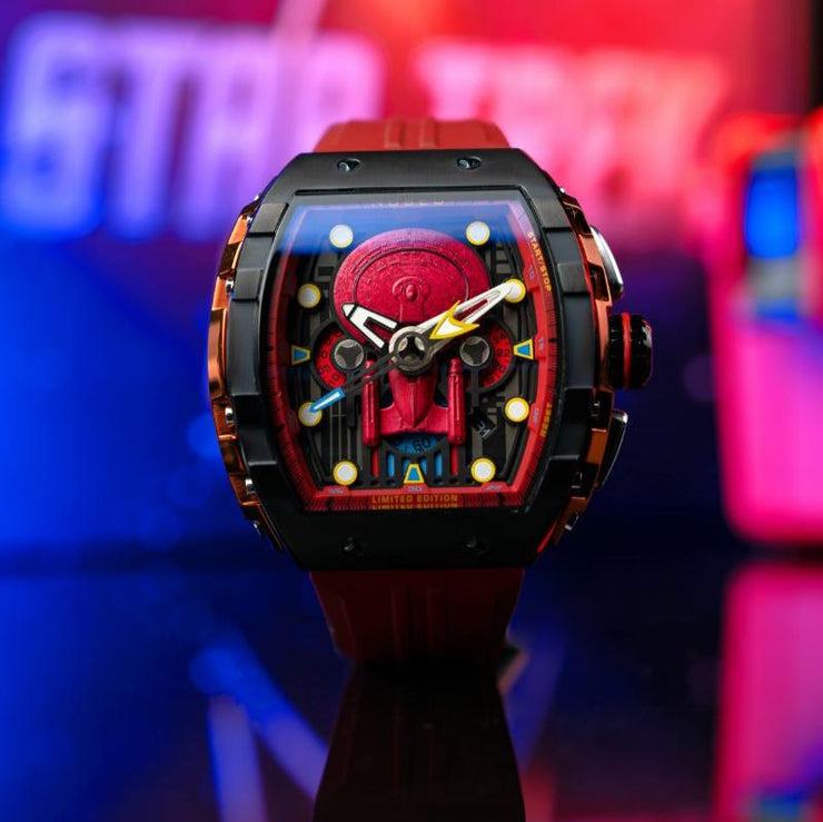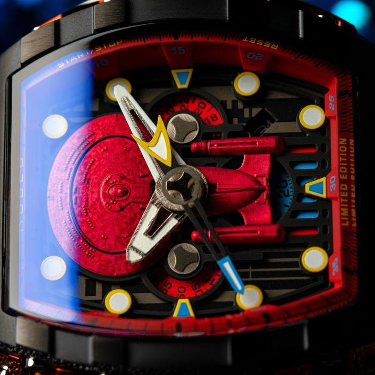 Nubeo proudly announces its 2nd collaboration with the iconic Star Trek franchise, unveiling the Magellan Chronograph Enterprise-D Limited Edition. It features a meticulously crafted 3-D moulded representation of the USS Enterprise-D station inside the dial, paying homage to one of the most celebrated starships in the Star Trek universe. Only 200 pieces are available per colorway.