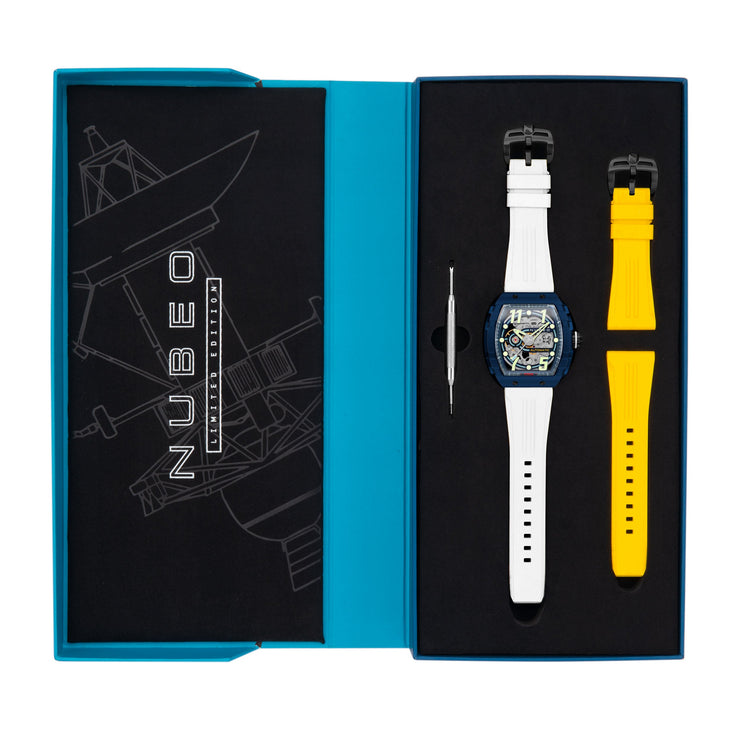 The captivating construction of the Magellan Vision highlights the inner engineering and artistry of the movement framed and housed in a multi-layered dial dressed in luminous materials and oversized hour indexes that create an entirely new aesthetic that is dynamic and captivating. Armed and supplied with a secondary strap for a more compelling and versatile wear.