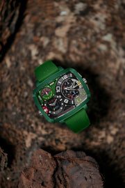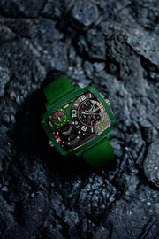 A spectacular timepiece at every angle. The Odyssey Triple Time Zone Chronograph is a limited edition of only 300 pieces. It features a unique space-inspired design and a dual time feature for travellers. Its rectangular case shape is also perfect for making a statement.