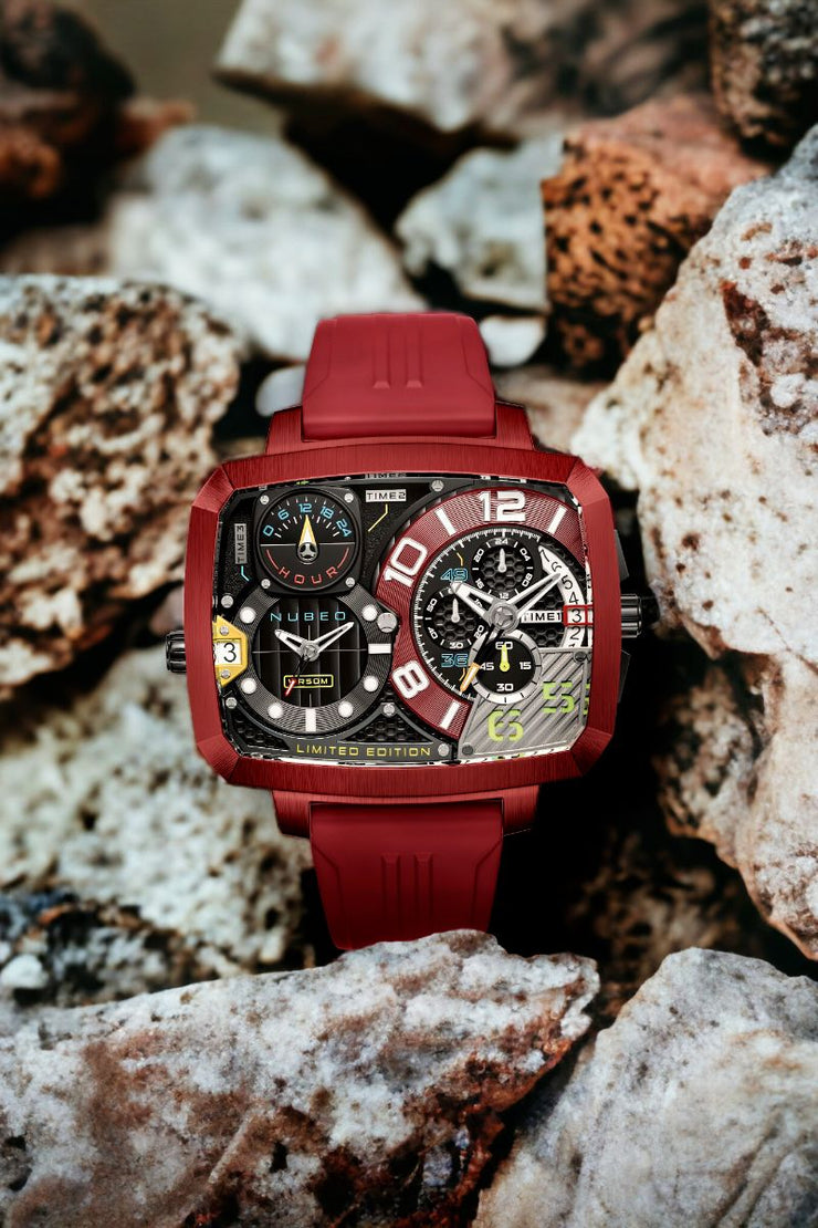 A spectacular timepiece at every angle. The Odyssey Triple Time Zone Chronograph is a limited edition of only 300 pieces. It features a unique space-inspired design and a dual time feature for travellers. Its rectangular case shape is also perfect for making a statement.