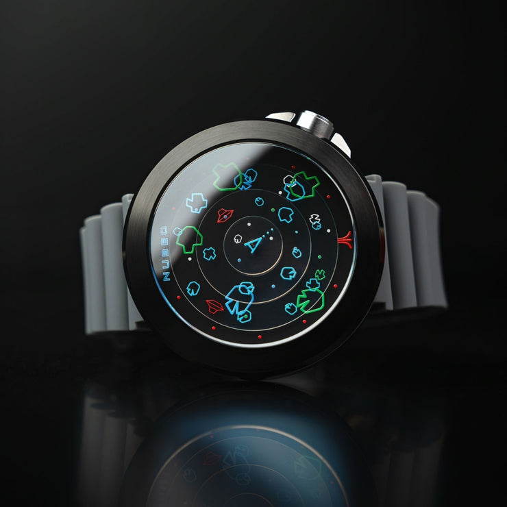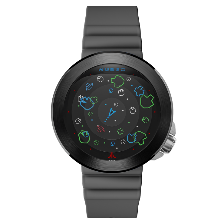 This exceptional collaboration between Atari and Nubeo celebrates the 45th anniversary of Asteroids, the legendary arcade game that captured imaginations with its groundbreaking gameplay and timeless charm. The timepiece showcases a layered, multidimensional dial inspired by the game's mechanics. UFOs glide across the dial, marking hours and minutes with bold creativity.