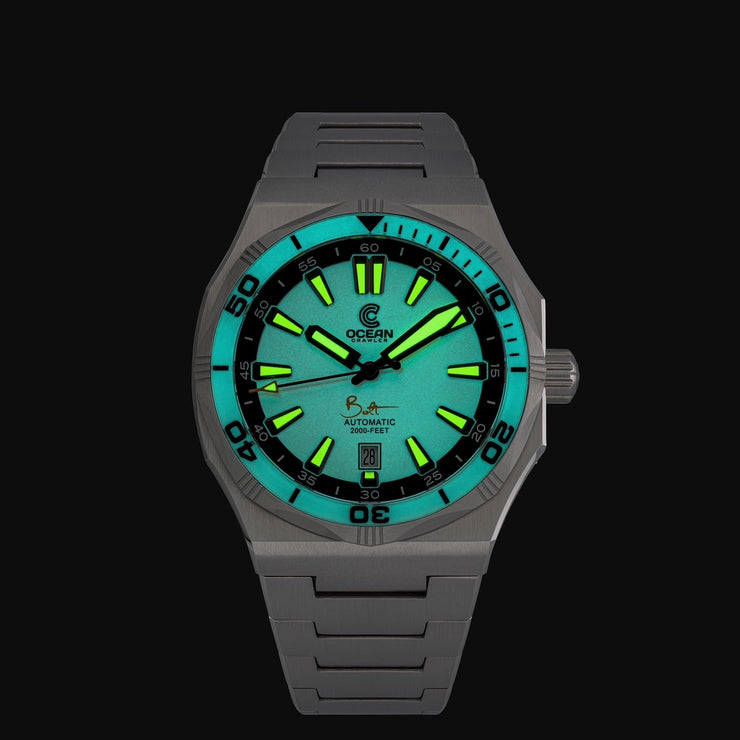 Introducing the Ocean Crawler Bolt – LumeWave Edition. Whether you're diving into the ocean or into summer adventure, the LumeWave is built to shine—day or night. The world’s slimmest 60 ATM dive watch just got a summer glow-up. Now featuring a full-lume bezel and dial combo, the LumeWave Edition delivers peak visibility and bold seasonal style in a sleek 42mm case—just 12.3mm thick.