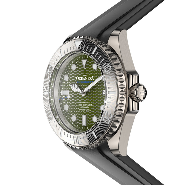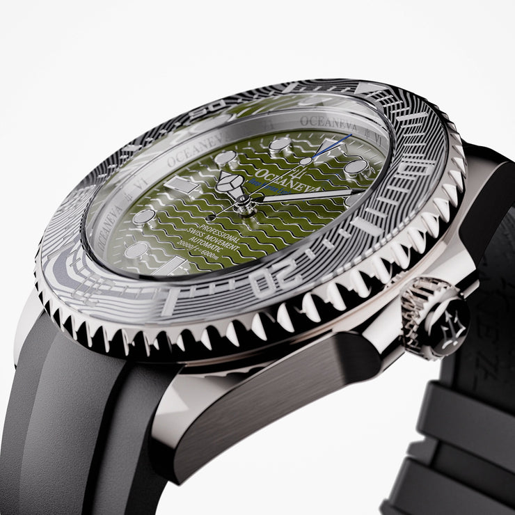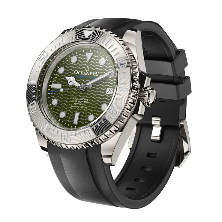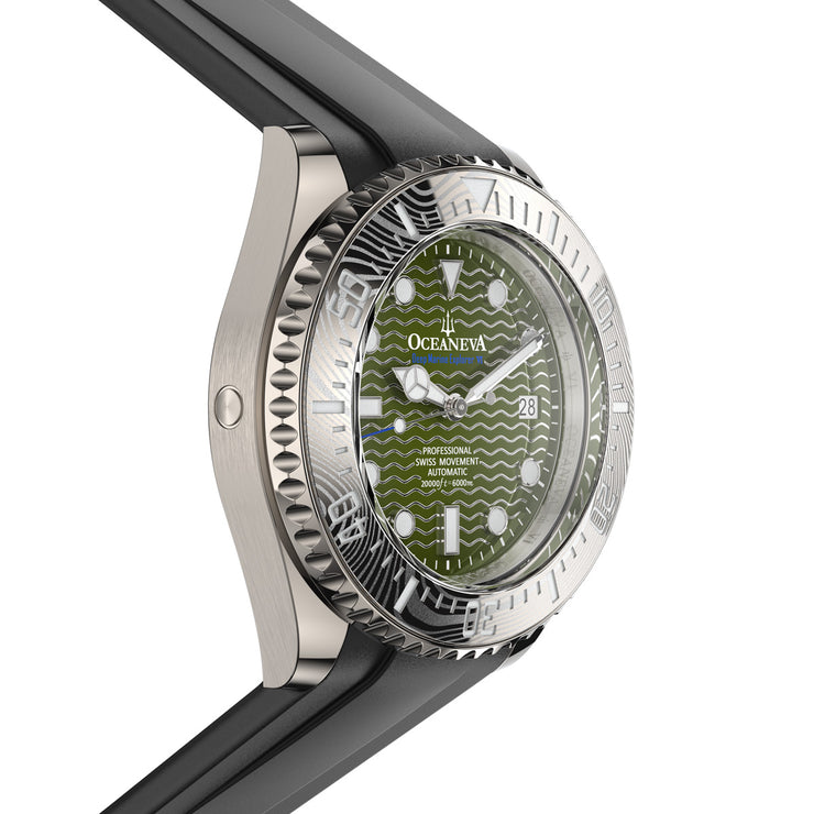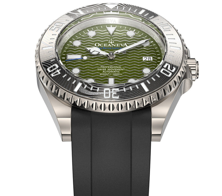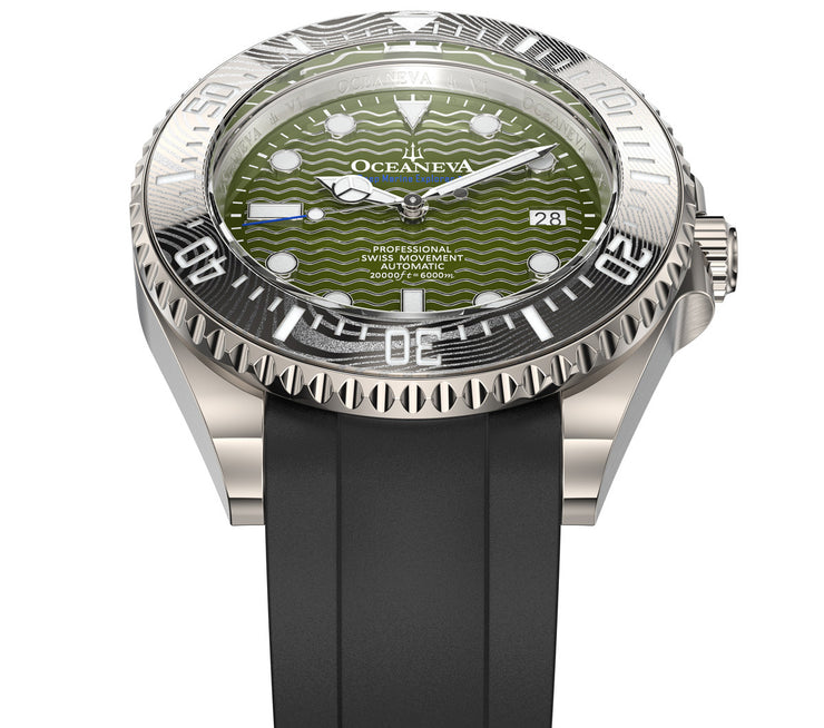 The Oceaneva Deep Marine Explorer VI 6000m is a groundbreaking dive watch that blends advanced engineering with refined design. Limited to just 500 pieces worldwide—with only 50 units per variant—this flagship model represents the pinnacle of luxury dive watch innovation. Proudly based in the USA, Oceaneva is one of the few brands in the world producing titanium timepieces capable of withstanding depths of 6000 meters, cementing its reputation as a leader in deep-sea horology.