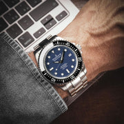 Featuring the Swiss Made Sellita SW200-1 Automatic movement, known for its reliability and precision, equivalent to the esteemed ETA 2824 but with an additional jewel for enhanced durability. With a water resistance of up to 1250 meters and a helium escape valve, this watch is not only designed for the deep sea but was ocean-tested to prove it, setting us apart as one of the few brands globally to take this rigorous step. Top-grade BGW9 Swiss Super Luminova on hands, hour markers, and the bezel ensures unparalleled visibility in the darkest depths. A 316L surgical stainless steel case paired with a black ceramic ultra-resistant bezel, and a navy blue dial that reflects the depths of the ocean. Limited to just 1000 pieces worldwide, each watch is individually numbered, making your timepiece as unique as your achievements.