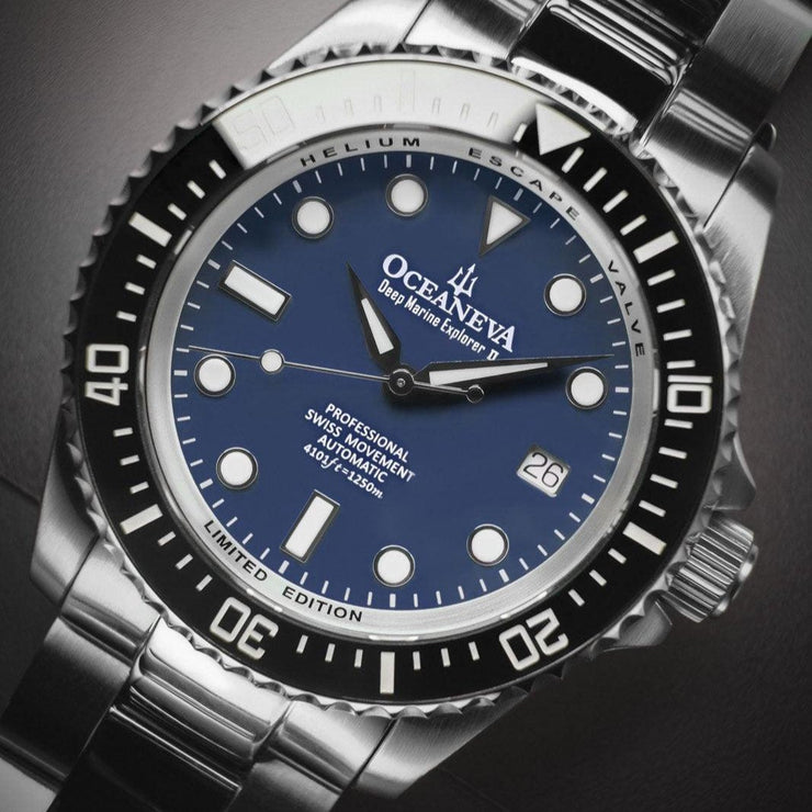 Oceaneva Deep Marine Explorer II Automatic 1250M Pro Diver Navy Limited Edition - Watches.com - BKII200NBLST