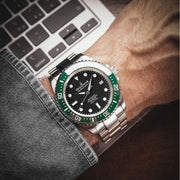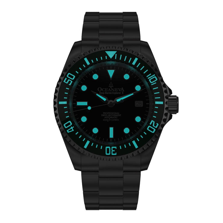 The Oceaneva™ Men's Deep Marine Explorer II 1250M Pro Diver Watch Black and Green is more than a timepiece—it's an invitation to live life on your terms, to explore the unknown, and to etch your mark on the world. Add this symbol of luxury, adventure, and innovation to your collection. Experience the transformation when your watch does more than track time—it elevates every moment. Your adventure begins now. Are you ready to write the next chapter of your story?