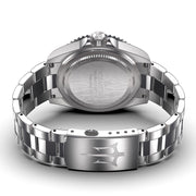 Crown: Screw-down with triple-seal crown to ensure 1250m water tightness, integrated case crown guards, and a trident logo on the crown.