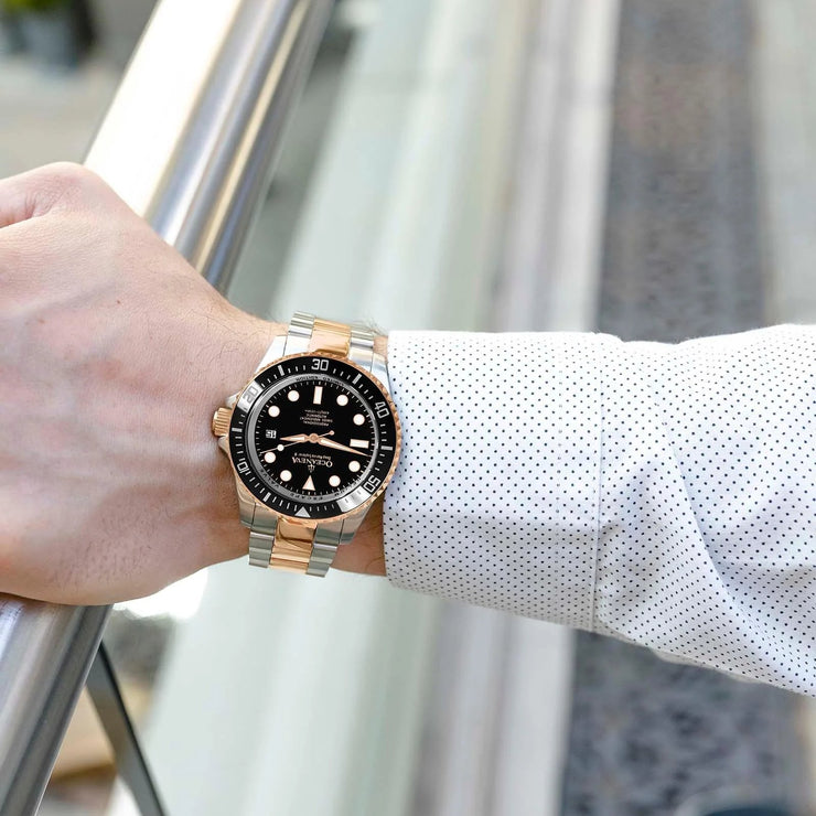In a world where every second counts, your watch isn't just a timepiece—it's a reflection of the milestones achieved, the adventures awaited, and the legacy you're building. Introducing the Oceaneva Men's Deep Marine Explorer II 1250M Pro Diver Watch Black Rose Gold—a symbol of elegance, adventure, and unparalleled craftsmanship that narrates your story without uttering a single word.