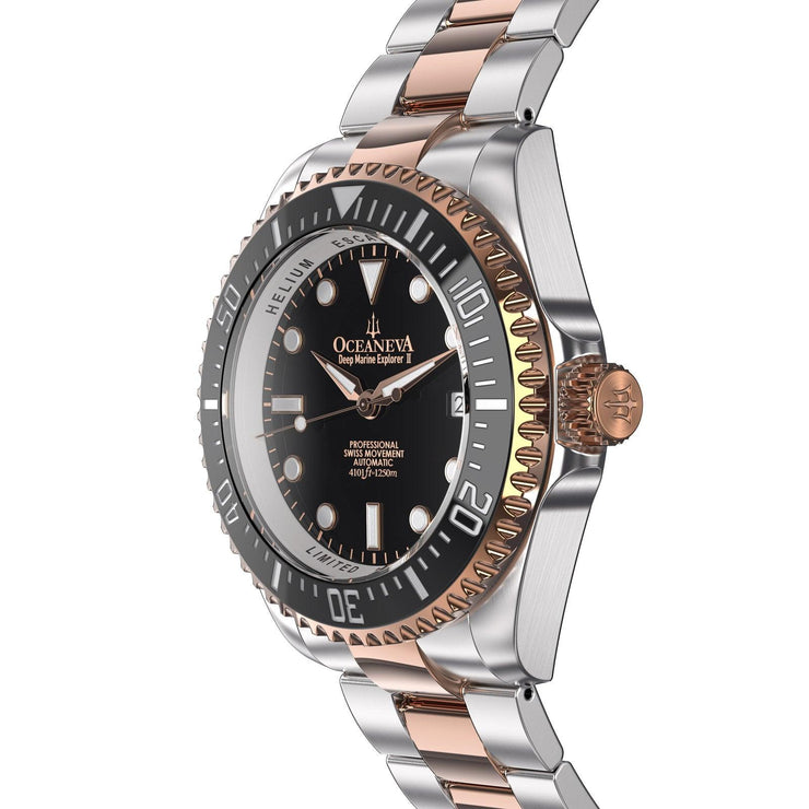 Oceaneva Deep Marine Explorer II Automatic 1250M Pro Diver Black Rose Gold Limited Edition - Watches.com - BKII200BKSTRGD