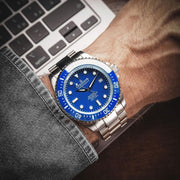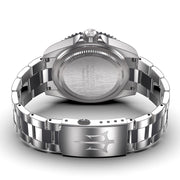 Encased in 316L surgical stainless steel and shielded by nearly scratchproof anti-reflective domed sapphire crystal, this watch is built to last generations. The blue ceramic bezel, combined with the luminous BGW9 Swiss Super Luminova, ensures visibility in the darkest depths. A handcrafted masterpiece, it showcases a grade A fit and finish, reflecting your quest for perfection.