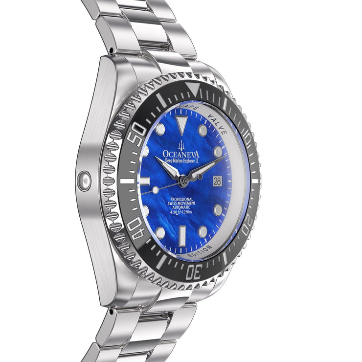 Introducing the pinnacle of precision and elegance, the Oceaneva™ Men's Deep Marine Explorer II 1250M Pro Diver Watch Blue Mother Of Pearl. A testament to unparalleled craftsmanship and adventure, designed exclusively for the elite. With only 1000 pieces produced, this timepiece isn’t just a watch; it’s a legacy wrapped around your wrist.