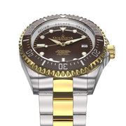 Dive into the essence of luxury and adventure with the Oceaneva™ Men's Deep Marine Explorer II 1250M Pro Diver Watch Brown Yellow Gold. Crafted for the elite, this timepiece is not just a watch; it's a statement of success, a milestone of achievements, and a beacon of precision and elegance. At the heart of this exquisite timepiece is the Swiss Made Sellita SW200-1 Movement, embodying the pinnacle of watchmaking craftsmanship. With 26 jewels, a 38-hour power reserve, and a hacking and quick date feature, it ensures unmatched reliability and sophistication. Engineered for the daring, the Deep Marine Explorer II boasts an astounding 1250m water resistance. Ocean tested and designed to conquer the depths, it features a brown ceramic bezel, a nearly scratchproof domed sapphire crystal, and a helium escape valve for unparalleled resilience under pressure.
