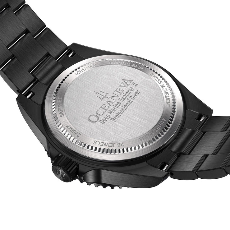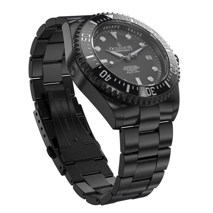 Oceaneva stands as the only USA brand to deep water test their watches in the ocean since 1960, a testament to our commitment to quality and performance. Our customers rave about the "best watch they’ve ever owned," praising its "beautiful design, excellent detail," and "great lume." This isn’t just a watch; it’s a piece of art that tells your story, an heirloom that marks milestones and celebrates achievements. Each Oceaneva™ Men's Deep Marine Explorer II is a testament to superior craftsmanship and a unique story - your story. With only 1000 pieces produced, owning one means joining an elite circle of trendsetters and affluent professionals who appreciate luxury, adventure, and precision.