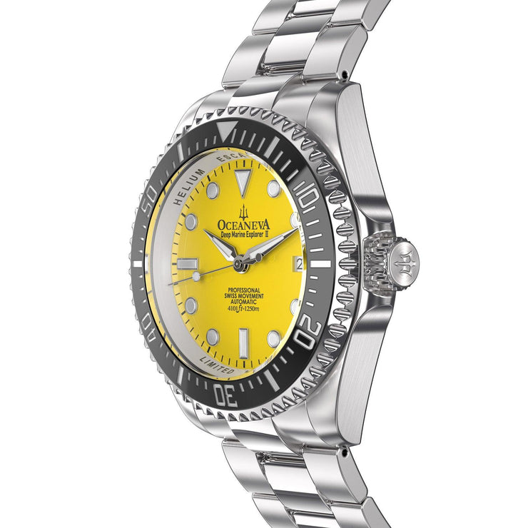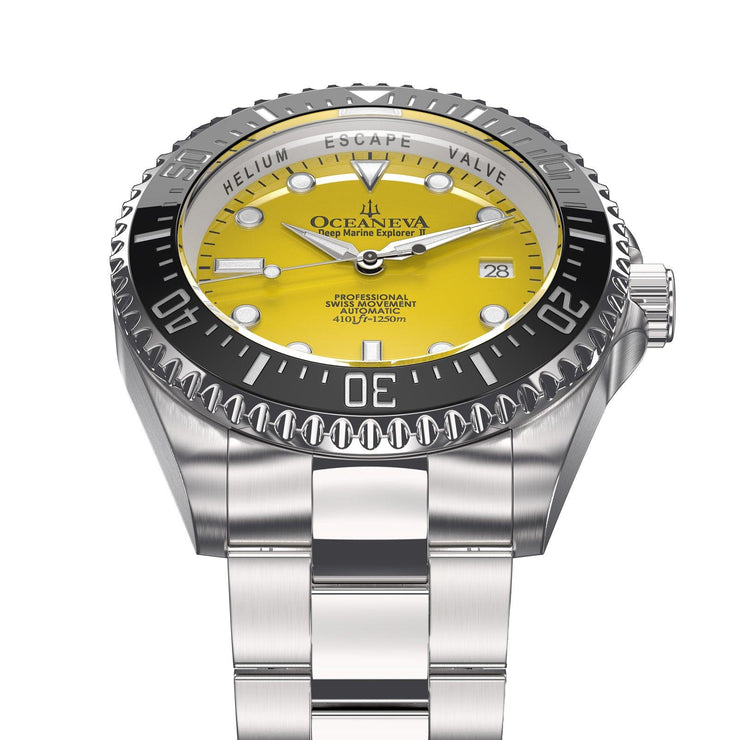 Introducing the epitome of precision and elegance: The Oceaneva™ Men's Deep Marine Explorer II 1250M Pro Diver Watch Yellow. A marvel in the world of luxury timepieces, this watch is not just an accessory; it's a statement of success, adventure, and unparalleled craftsmanship. Designed for the elite, the trendsetter, and the connoisseur of fine watches, this timepiece is a testament to your story of achievement and milestones.