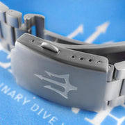 Clasp: Push-button milled titanium clasp with Oceaneva trident logo and micro-adjustments.