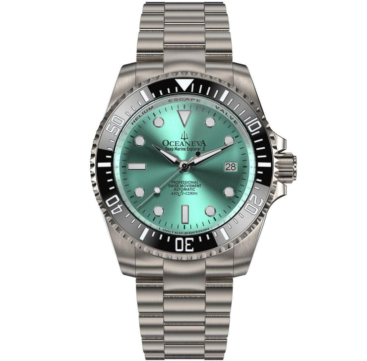 Step into a world where elegance meets adventure, where every sweep of the clock pulses with sophistication, success, and the thrill of discovery. The exclusive Oceaneva™ Men's Deep Marine Explorer II 1250M Titanium Watch is more than just a timepiece; it's a symbol of your achievements and the adventures that lie ahead. It’s not just about telling time; it’s about telling your story.