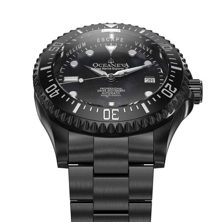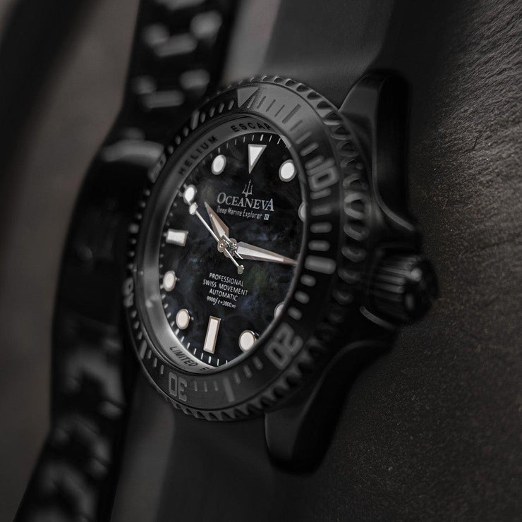Introducing the Epitome of Deep-Sea Exploration – the Oceaneva™ Men's Deep Marine Explorer III 3000M Pro Diver Watch. With a limited edition of only 1000 pieces, this watch isn't just an accessory; it's a legacy. Crafted for the elite trendsetter and the luxury watch collector, this timepiece is a testament to impeccable craftsmanship and the spirit of adventure. In your hands, the Deep Marine Explorer III is not merely a watch. It's a narrative of conquest, precision, and elegance, built for the affluent professional who demands nothing less than extraordinary. Each element, from the meticulously crafted bezel to the elite Swiss movement, serves a purpose greater than the sum of its parts.