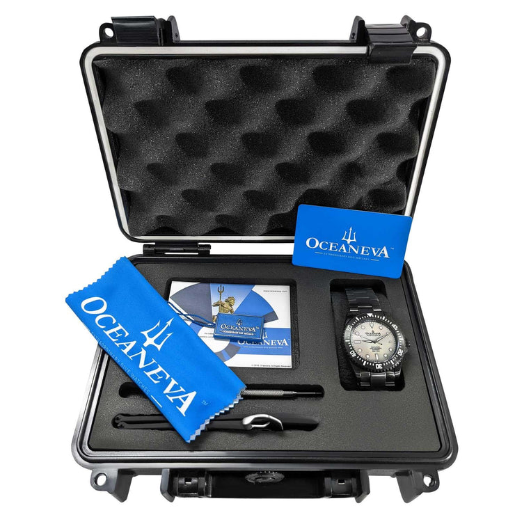 Water Resistance: 9000 Feet / 3000m, Ocean tested design. Oceaneva is the only USA based watch brand to ever send their watchers to deep depths of the oceans for actual real word testing and only the 6th brand globally to ever do so.