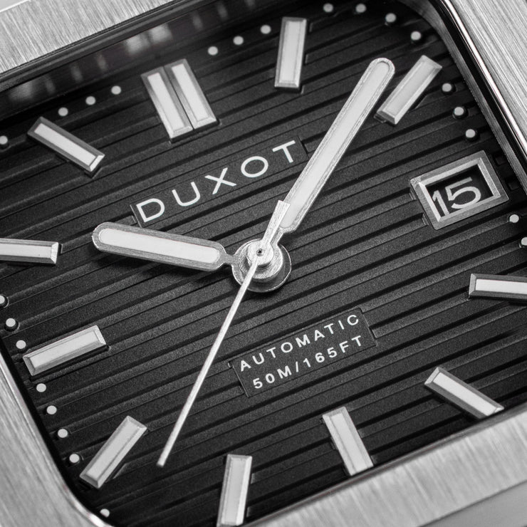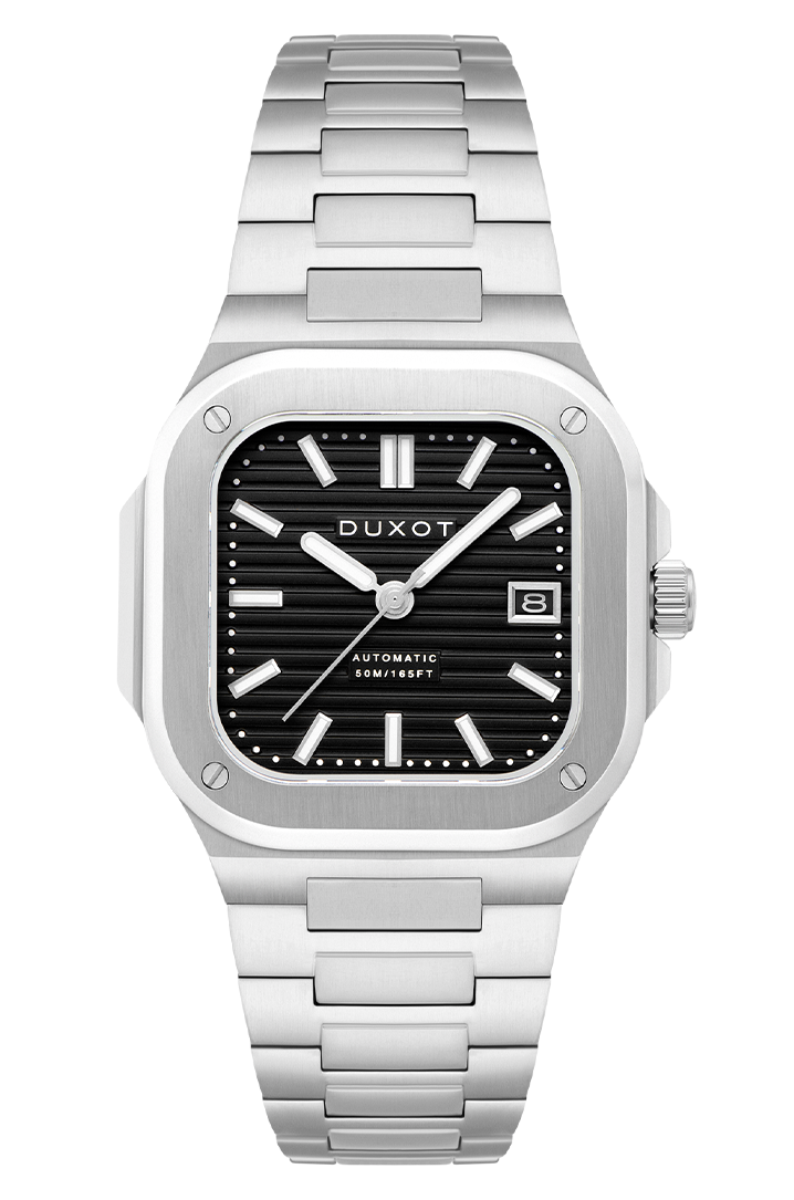 The Quadrata Automatic is a celebration of timeless square case design. Sized at 42mm, this timepiece is powered by a precise Japanese automatic movement with an exhibition caseback that reveals the mechanical artistry within. Finished with a solid stainless steel bracelet and butterfly clasp, the Quadrata embodies the modern aesthetics of minimalism and symmetry.