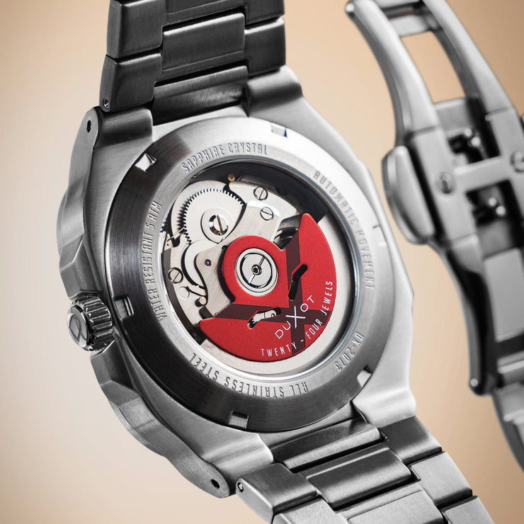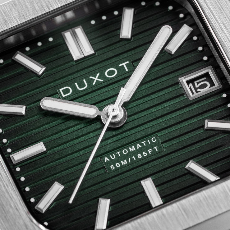 The Quadrata Automatic is a celebration of timeless square case design. Sized at 42mm, this timepiece is powered by a precise Japanese automatic movement with an exhibition caseback that reveals the mechanical artistry within. Finished with a solid stainless steel bracelet and butterfly clasp, the Quadrata embodies the modern aesthetics of minimalism and symmetry.