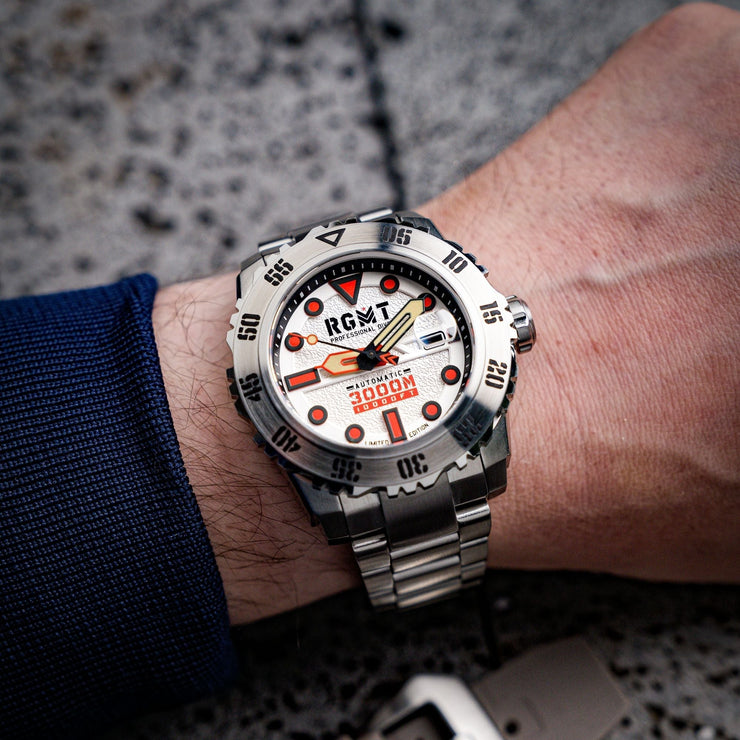 Possibly our most groundbreaking timepiece to date. An immense 3000 Meters of water resistance jammed into an incredible feat of watchmaking engineering.