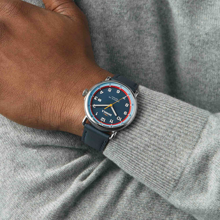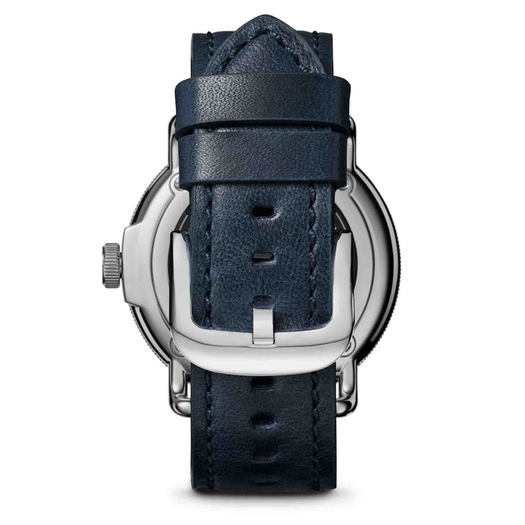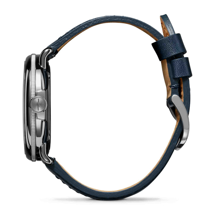 Inspired by Michigan’s mid-century modern marvels, the Canfield Model C56 echoes the striking characteristics of the General Motors Design Dome and the ingenuity of the designers behind it. From the streamlined open style of the GT blue dial with a contrasting bright blue and red ring to the sleek look of the polished stainless steel case and navy leather strap, these details harken to the exciting age of design that could only have come from Detroit. Thoughtfully crafted with an engravable caseback, making this timepiece the perfect gift for the design and watch enthusiasts in your life.