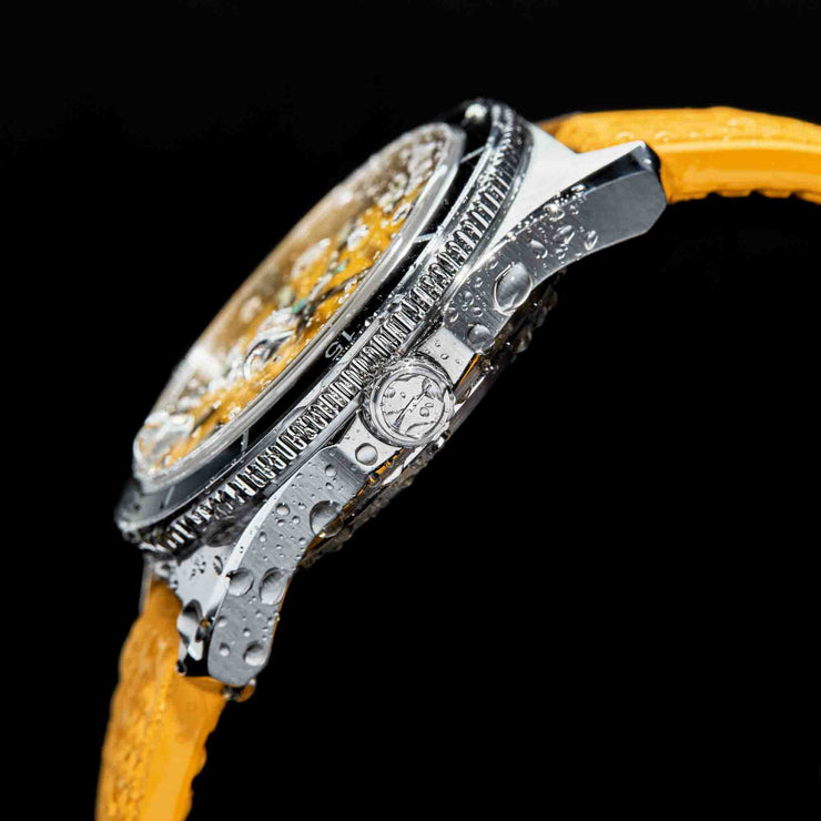 Flip the watch to reveal the custom caseback featuring a relief etching of the Duck’s namesake in action. This sporting timepiece looks as good out of the water as it does in it—and it’s built for all of life’s adventures.