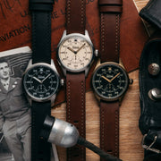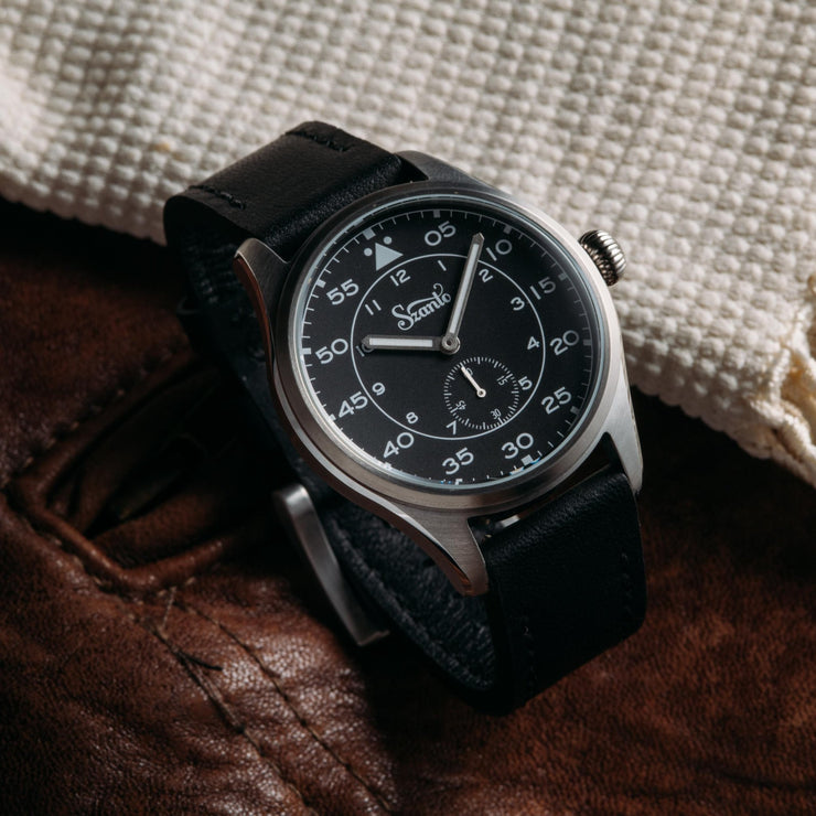 Szanto watches are a modern take on classic vintage watch designs – with classic styling and the highest quality workmanship. Szanto’s modern components offer accuracy and affordability. The Heritage Aviator series features a 41mm 316L Stainless Steel Case With Fixed Bezel (some models IP Plated in Antique Gold), Stainless Steel Push Crown and Screw-In Caseback. Flat Hardened Mineral Crystal. Japan Quartz (Miyota 1L45) Small Seconds Movement, 100 Meters Water Resistant, Genuine Leather Strap (20mm) with Easy Change Spring Bar and Signature Szanto Buckle. Styles from the past re-imagined for today ---so take a step back in time with Szanto!