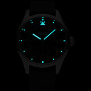 Thick Swiss SuperLuminova Lume on Hands and Indices ensures bright and long lasting visibility
