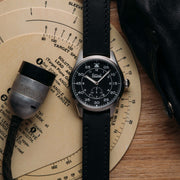 22mm Black Genuine Leather Strap with Signature Buckle