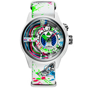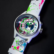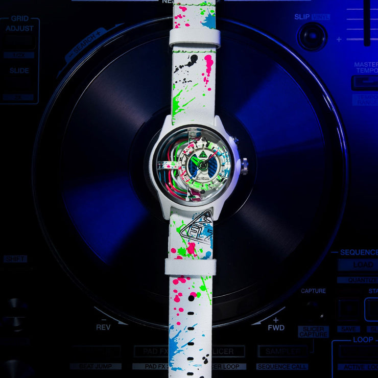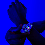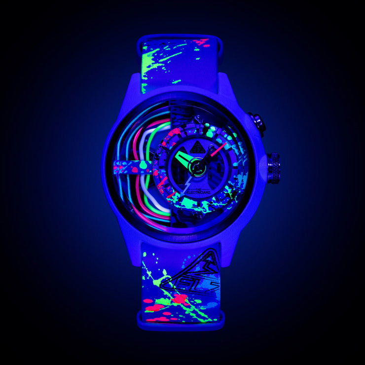 The Neon Z is back! Electricianz is ready to reveal their RE-Born “Neon Z” LIMITED EDITION. Are you a "Clubber, a Neon Addict” or simply a fan of urban cultures? Then these DUO EDITIONS are MADE for you. The New Neon Z Editions are proposed in two color variations - for double the fun! A Deep Black & a Pure White version LOADED with Multi Color Fluorescent Pigments. The pigments on the watch parts will burst under UV Black Light...So The NEON Z will show its FULL potential when exposed to the Night Time! The in house patented module is powered by an independent battery & the time is powered by a second independent battery. Your watch will be delivered in its uniquely designed packaging including a UV torch.