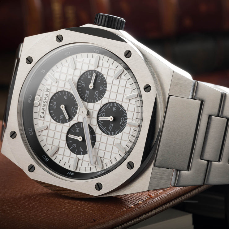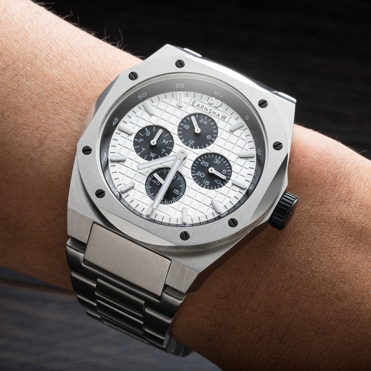 A new expression in the Earnshaw vocabulary of watch design. The Bessemer is a robust, geometric, and industrial in build and refinement. Strong and bold, it nonetheless carries the sophistication, detail and finesse of the Earnshaw legacy of quality timekeeping.