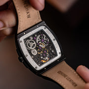 Characterized by its spectacular design and minute details, the Invincible Tourbillon is crafted from a 42mm tonneau-shaped stainless steel case. Its skeleton dial provides an effortlessly elegant look while remaining solid and refined. A limited edition of 80 pieces and perfect for any formal or casual occasion, this watch is the epitome of luxury and sport.