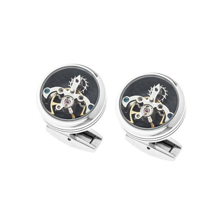 Stainless Steel cuff link with Imitate Tourbillon with EARNSHAW Logo