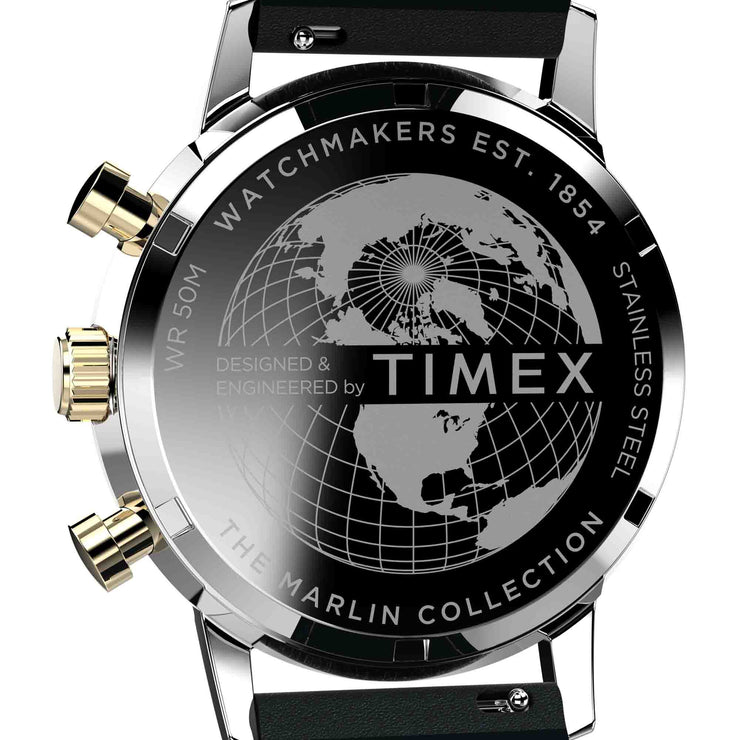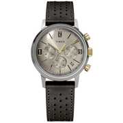 Timex’s Marlin Chronograph Tachymeter boasts the distinction of being the first chronograph in the Marlin line, as well as the first Marlin powered by a quartz movement. This beautifully detailed rendition features a tachymeter index along its outer minute track to measure speed and distance, a unique date window placement, and a perforated natural leather strap. Though its build breaks new ground in their watchmaking heritage, this timepiece retains the classic Marlin features with a sturdy stainless-steel case, domed acrylic crystal lens, and retro-style square markers at 3, 9, and 12 o'clock.