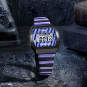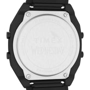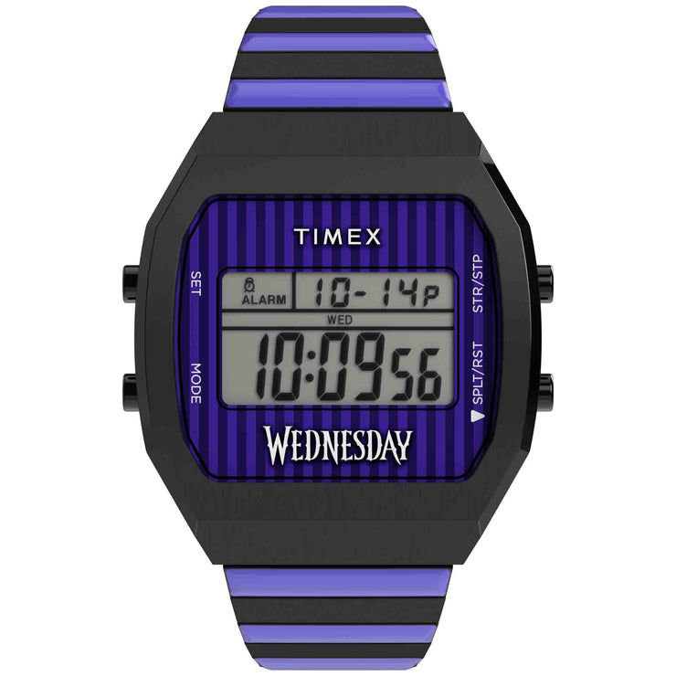Timex is unveiling a darkly delightful collaboration for those brave enough to embrace the macabre. The Timex x Wednesday T80 is laced with eerie details and a hint of mystery, presenting a 36mm stainless-steel case and bracelet in a fun purple and black colorway. When the INDIGLO® backlight is activated, a spider web emerges across the display, making for a watch that’s boldly bizarre, daringly different, and anything but ordinary. Plus, the expansion band features the Perfect Fit technology, requiring no tools to get a custom look and feel.