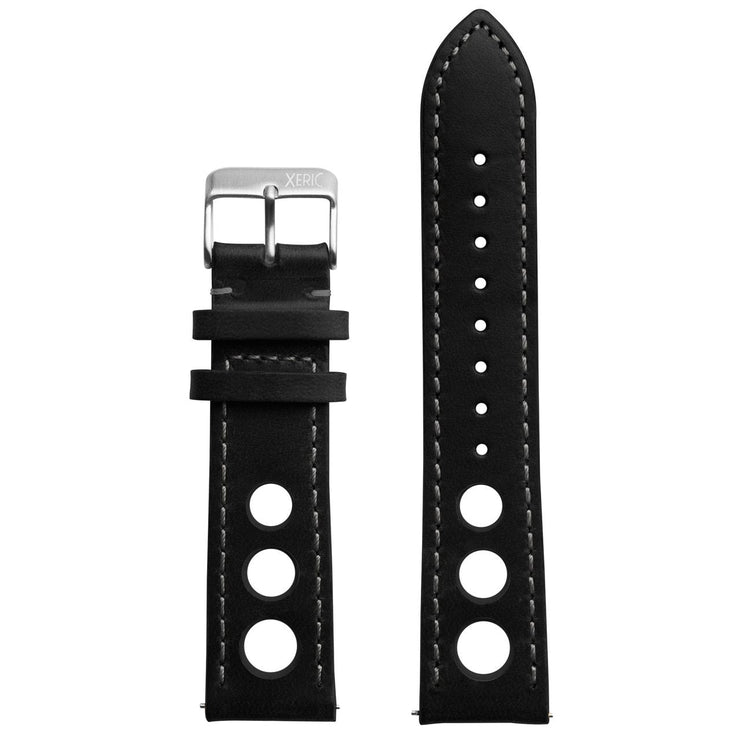 Xeric 20mm Horween Leather Rally Black Charcoal Strap Silver Buckle - Watches.com - XRC - RLY - 20 - BKCH