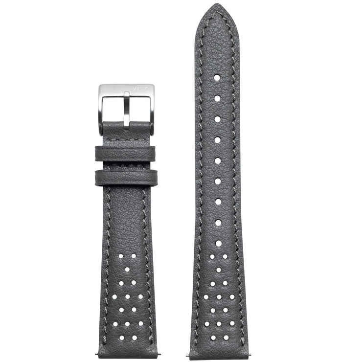 Custom 20mm Italian leather racing strap, featuring a quick release system that allows for tool-free strap changes.