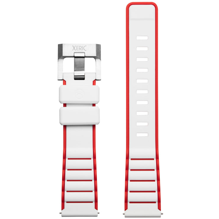 Xeric 20mm White Red Silicone Strap angled shot picture