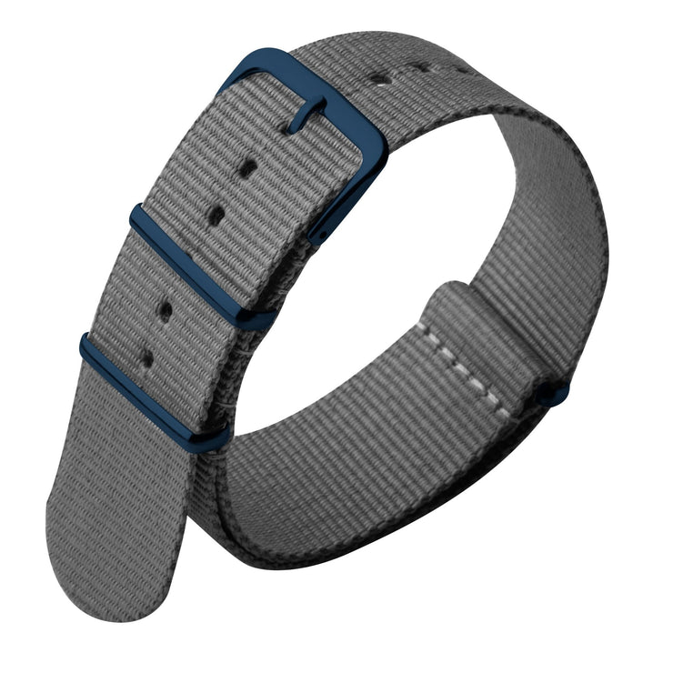 A polyester strap with stainless steel buckle and fitted keepers. Available in a variety of bold colors and materials, these natostyle straps convey the rugged yet contemporary and stylish look. 22mm wide to fit the Trappist-1 NASA Edition.