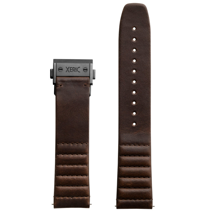 Xeric 22mm Ribbed Horween Leather Brown Strap with Gunmetal Deployant Clasp