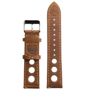 Custom Horween leather (made in America) rally strap, featuring a quick release system that allows for tool-free strap changes. Horween is a historic American tannery in Chicago, Illinois, and they have been making the finest leathers since 1905.