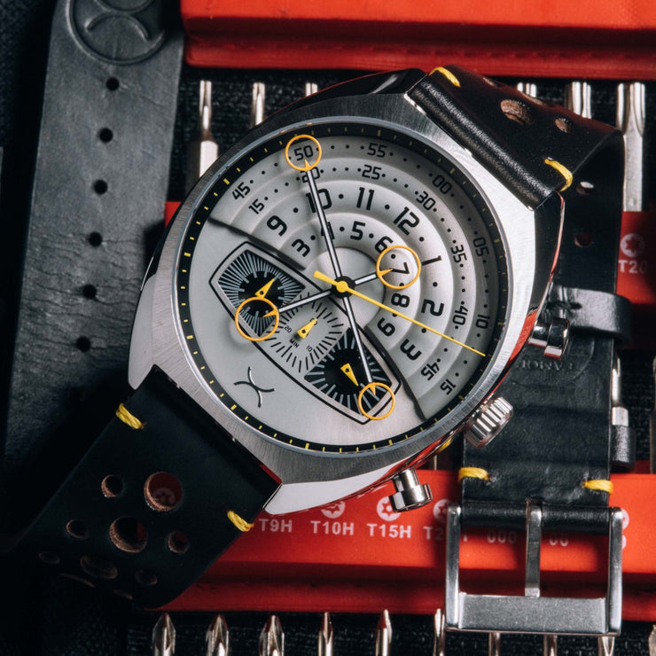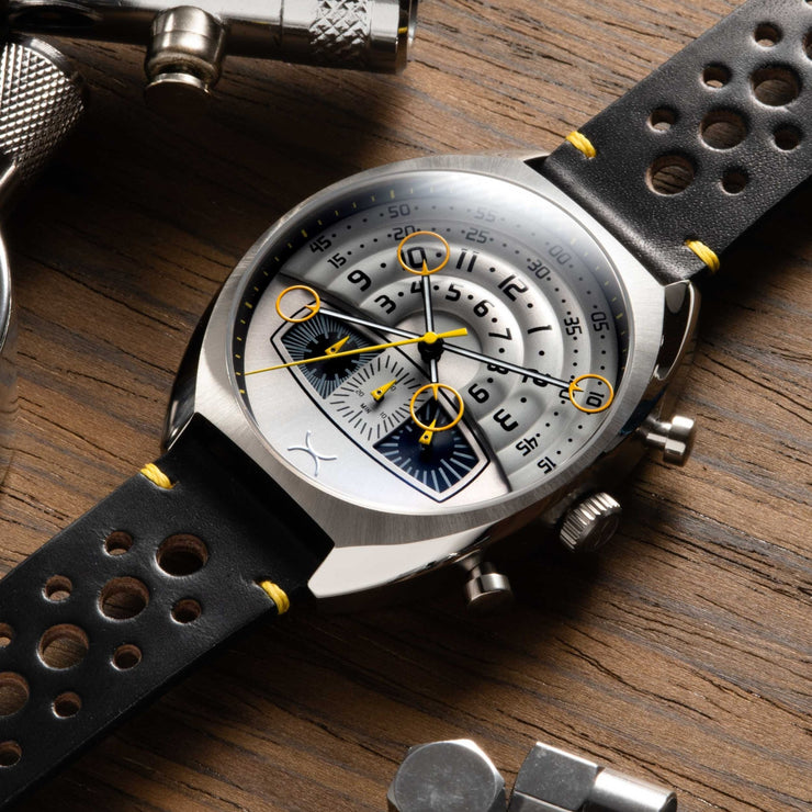 At Xeric, we always live by the spirit of the ’60s by pushing boundaries in our watch designs. Inspired by an era of vintage timepieces and striking automotive design, we’re excited to bring you the latest iteration of a classic Xeric watch: the limited edition Halograph III Chrono