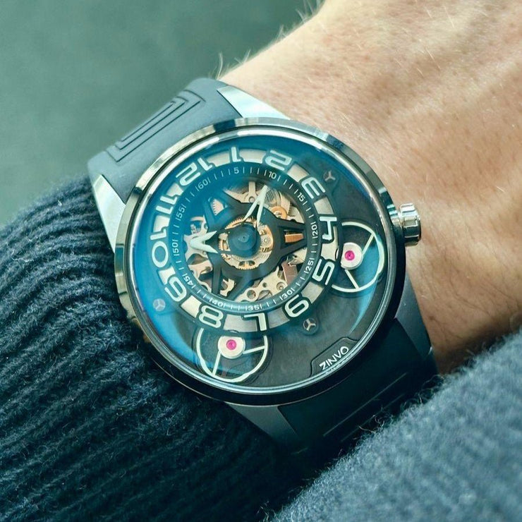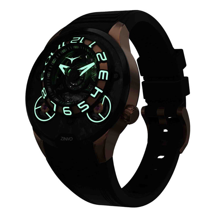 The newest novelty of the exquisite elegance blends into sophistication, the JUMBO captures the essence of modern luxury. Featuring the custom in-house 42-caliber automatic movement marks ZINVO's decade of innovation and style. Stand out from the crowd.