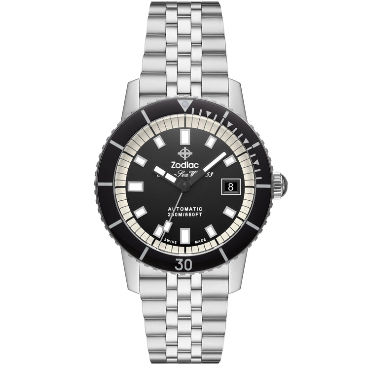 Featuring a brushed stainless steel case and SuperLuminova hands and indexes, Sea Wolf conveys the brand's commitment to definitive style with timeless roots. The automatic movement and sapphire crystal with anti-reflective coating stay true to the quality and style of Zodiac.